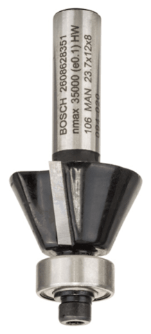 Der Standard for Wood Fasefräser mit 25-Grad-Winkel ermöglicht eine hohe Schneidleistung für konsistentes Anschrägen. Mit hochwertigen Schneiden aus Wolframcarbid für Haltbarkeit und zuverlässiges Schneiden. Auch begrenzt das Design des Fräsers die Spangröße und vermeidet damit Rückschlag. Der Fräser ist für konsistentes Anschrägen von Kanten in Weich- und Hartholz sowie Holzverbundstoffen geeignet. Die Fasenbreite wird einfach durch Verstellen der Fräserhöhe geregelt. Der 25-Grad-Winkel ist zudem ideal zum Anschrägen von Holzbrettern. Das Kugellager ermöglicht direktes Führen auf dem Werkstück ohne Seitenführung.