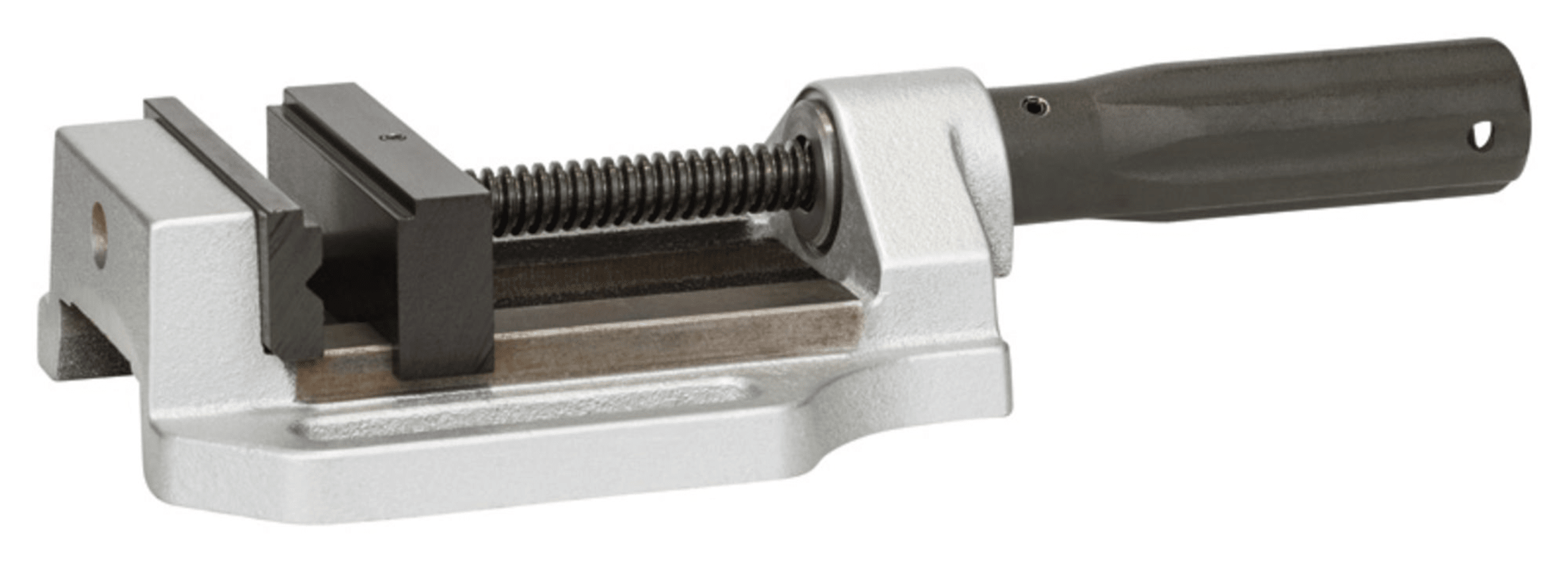 Die Klemmbacken sind für sicheres Arbeiten auf einer höchst komfortablen Höhe mit Eisen- und Nichteisenmetallen konzipiert. Der Maschinenschraubstock ermöglicht schnelles, zuverlässiges Einstellen sowie Stabilität bei der Arbeit. Er verfügt über ein Gehäuse aus Aludruckguss, schwarze verchromte Backen und ergonomische Griffe für den Handwerkergebrauch.