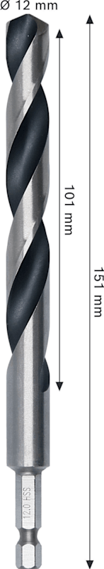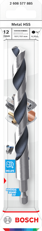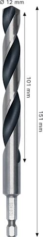 Meesenburg Artikelbezeichnung: BOSCH METAL HSS SPIRALBOHRER 12X101X151MM HEX 1/4“ SCHAFT (2608577885