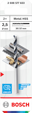 BOSCH METAL HSS SPIRALBOHRER 2,5X30X57MM CYL-SCHAFT 2-TLG (2608577833