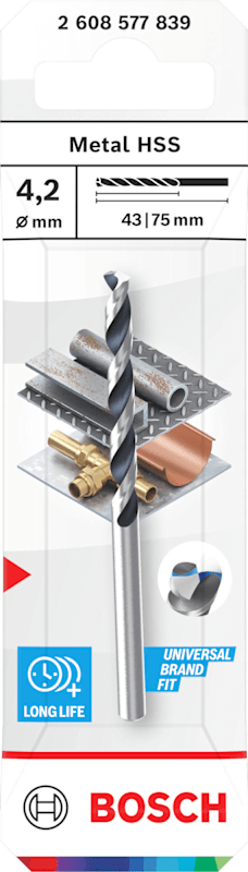 Meesenburg Artikelbezeichnung: BOSCH METAL HSS SPIRALBOHRER 4,2X43X75MM CYL-SCHAFT (2608577839)