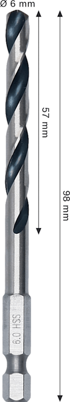 Bosch Metal HSS Spiralbohrer, 6 x 57 x 98 mm, HEX 1/4 Schaft