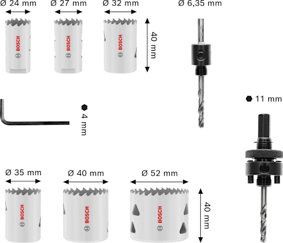 Bosch Multi Material Lochsägen-Set mit Gewinde, 24; 27; 32; 35; 40; 52 x 40 mm