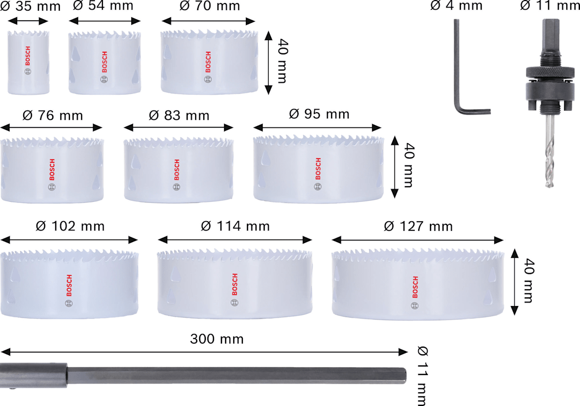 Bosch Multi Material Lochsägen-Set mit Gewinde, 35/54/70/76/83/95/102/114/127 x 40 mm