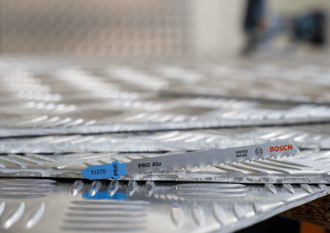 Herausragende Lebensdauer beim Schneiden von Aluminium! Geschränkte Zähne mit großen Spanräumen sorgen für langanhaltende Leistung Du bist Metallarbeiter und benötigst ein langlebiges Stichsägeblatt, um Aluminium schnell zu schneiden? Dann ist das PRO Alu T127D für dich die richtige Wahl. Wir haben es entwickelt, damit du schnelle Schnitte in Werkstücke mit einer Dicke von bis zu 15 mm erzielen kannst – immer und immer wieder. Das PRO Alu T127D Stichsägeblatt ist eine herausragende, langlebige Ergänzung für jede Metallwerkstatt. Es wurde aus Schnellarbeitsstahl (HSS) hergestellt, um die Stabilität und Hitzebeständigkeit zu gewährleisten, die du beim Schneiden von Aluminium und anderen Nichteisenmetallen benötigst. Wir haben es mit gefrästen, geschränkten Zähnen und ovalen Spanräumen versehen, um einen gleichmäßigen Schnitt zu gewährleisten. Schneide damit Aluminiumbleche mit einer Dicke von 3 bis 15 mm, Rohre und Profile mit einem Durchmesser von bis zu 25 mm.