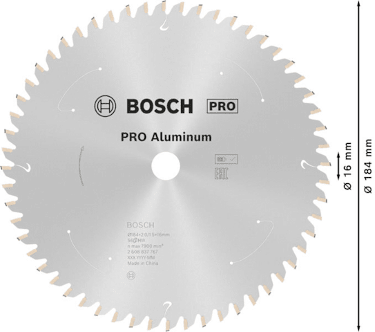 BOSCH PRO ALUMINIUM CORDLESS KREISSÄGEBLATT 184X2X16MM (2608837767)