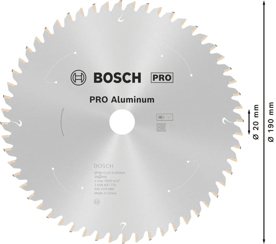 Meesenburg Artikelbezeichnung: BOSCH PRO ALUMINIUM CORDLESS KREISSÄGEBLATT 190X2X20MM (2608837770)
