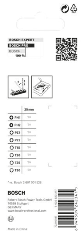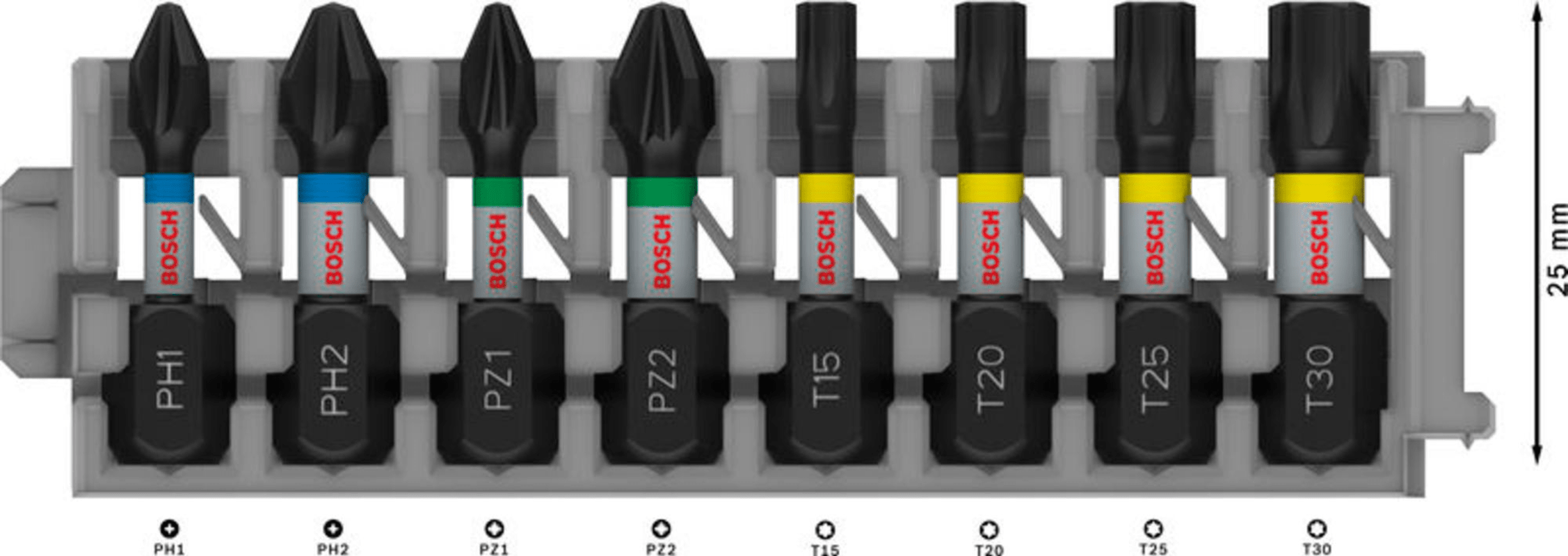 Bosch PRO Impact Mixed Pack, PH1; PH2; PZ1; PZ2; T15; T20; T25; T30, 25 mm, 8-tlg.