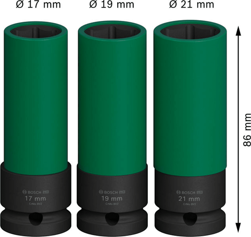 Bosch "PRO Impact Socket Set mit PET-Abdeckungen, 1/2"", extra tief, 3‑tlg."