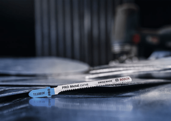 Herausragende Lebensdauer in Metall! Bi-Metall Blatt: Kombiniert harte Zähne mit flexiblem Blattkörper Wir haben das langlebige Stichsägeblatt PRO Metal curve T118EOF entwickelt, damit du saubere Kurvenschnitte in Blech und perforiertem Metallblech erzielen kannst – immer und immer wieder. Das PRO Metal curve T118EOF aus BI-Metall verfügt über eine Zahnleiste aus Schnellarbeitsstahl (HSS), die mit einem elastischeren Körper aus Kohlenstoffstahl (HCS) verbunden ist. Dadurch bekommst du die Härte und Flexibilität, die du für die Bearbeitung von Blechen benötigst. Das schmale Blatt ermöglicht dir schnelle Kurven beim Schneiden. Gefräste, gewellte Zähne sorgen für saubere Kurvenschnitte. Schneide damit Bleche mit einer Dicke von 1,5 bis 4 mm.
