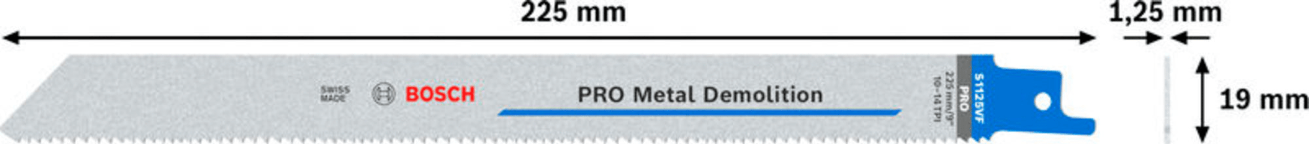 Meesenburg Artikelbezeichnung: BOSCH PRO METAL DEMOLITION S1125VF BLATT 1,25X19X225MM 2-TLG. (2608659001)