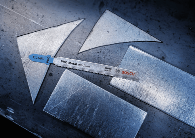 Herausragende Lebensdauer in Metall mittlerer Dicke! AlTiN-Beschichtung für anspruchsvolle Metallarbeiten Bist du Metallarbeiter und suchst ein starkes und langlebiges Stichsägeblatt zum Schneiden von Metallblechen? Dann ist das PRO Metal medium T121AFC die richtige Wahl. Wir haben die Zähne mit einer Beschichtung verstärkt, um sicherzustellen, dass sie Hitze und Oxidation widerstehen. Damit kannst du gerade Schnitte in Blech mittlerer Dicke erzielen – immer und immer wieder. Das PRO Metal medium T121AFC Stichsägeblatt besteht aus BI-Metall: Es verfügt über eine Zahnleiste aus Schnellarbeitsstahl (HSS) mit einer Aluminium-Titan-Nitrid-Beschichtung (AlTiN), die für gute Stabilität und Haltbarkeit mit einem Körper aus Kohlenstoffstahl (HCS) verbunden ist. Die Zahngeometrie – stark gefräste, gewellte Zähne – sowie der konische Körper des Blatts und die dünne Schnittfuge sorgen für einen gleichmäßigen Schnitt. Schneide damit Bleche mit einer Dicke zwischen 1 und 3 mm.