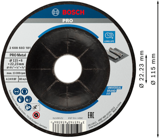 BOSCH PRO METAL SCHLEIFSCHEIBE 115X6X22,23MM (2608603181)