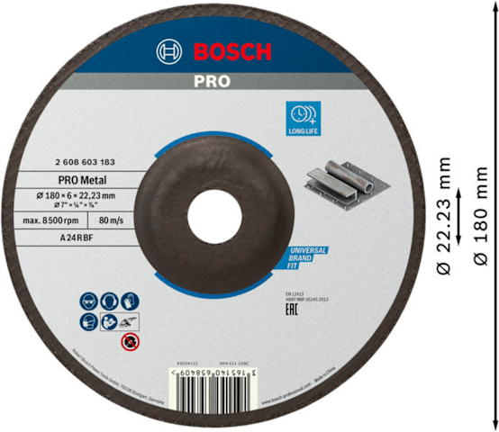 Bosch PRO Metal Schleifscheibe, 180 x 6 x 22.23 mm
