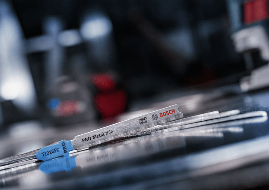 Herausragende Lebensdauer in dünnem Metall! AlTiN-Beschichtung für anspruchsvolle Metallarbeiten Bist du Metallarbeiter und suchst ein starkes und langlebiges Stichsägeblatt zum Schneiden dünner Metallbleche? Dann ist das PRO Metal thin T121GFC die richtige Wahl. Wir haben die Zähne mit einer Beschichtung verstärkt, um sicherzustellen, dass sie Hitze und Oxidation widerstehen. Damit kannst du gerade Schnitte in dünnem Blech erzielen – immer und immer wieder. Das PRO Metal thin T121GFC Stichsägeblatt besteht aus BI-Metall: Es verfügt über eine Zahnleiste aus Schnellarbeitsstahl (HSS) mit einer Aluminium-Titan-Nitrid-Beschichtung (AlTiN), die für gute Haltbarkeit und Stabilität mit einem Körper aus Kohlenstoffstahl (HCS) verbunden ist. Die Zahngeometrie – stark gefräste, gewellte Zähne – sowie der konische Körper des Blatts und die dünne Schnittfuge sorgen für einen gleichmäßigen Schnitt. Schneide damit dünne Bleche mit einer Dicke zwischen 0,5 und 1,5 mm.