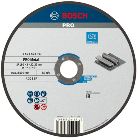 Meesenburg Artikelbezeichnung: BOSCH PRO METAL TRENNSCHEIBE 180X3X22,23MM (2608603167)
