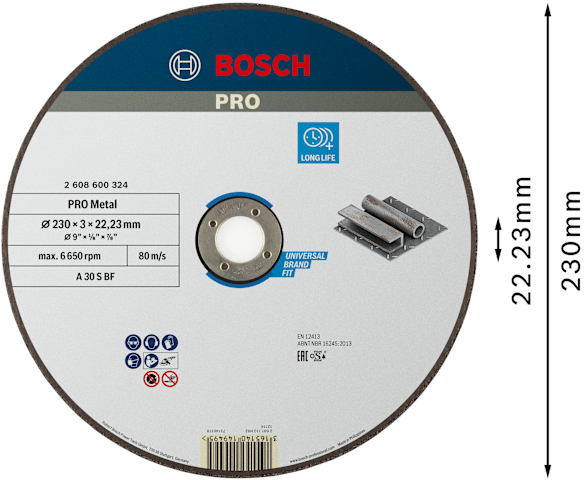 BOSCH PRO METAL TRENNSCHEIBE 230 230X3,0X22,23MM GERADE OSA (2608600324)