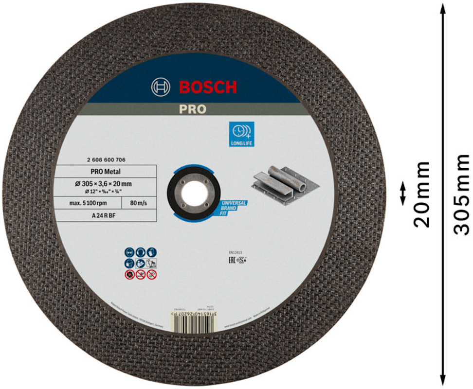 Meesenburg Artikelbezeichnung: BOSCH PRO METAL TRENNSCHEIBE 300X3,5X20MM (2608600706)