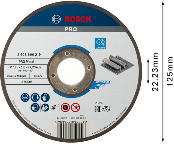 Meesenburg Artikelbezeichnung: BOSCH PRO METAL TRENNSCHEIBE 125X1,6X22,23MM (2608600219)