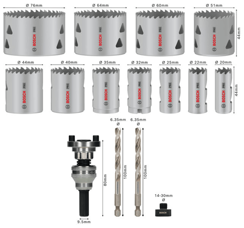 Bosch PRO Multi Material Lochsäge Q-Lock Aufsteckhalter-Set, 15-tlg.