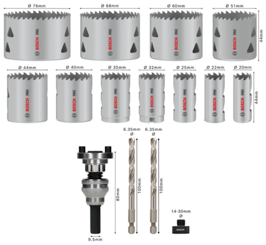 Bosch PRO Multi Material Lochsäge Q-Lock Aufsteckhalter-Set, 15-tlg.