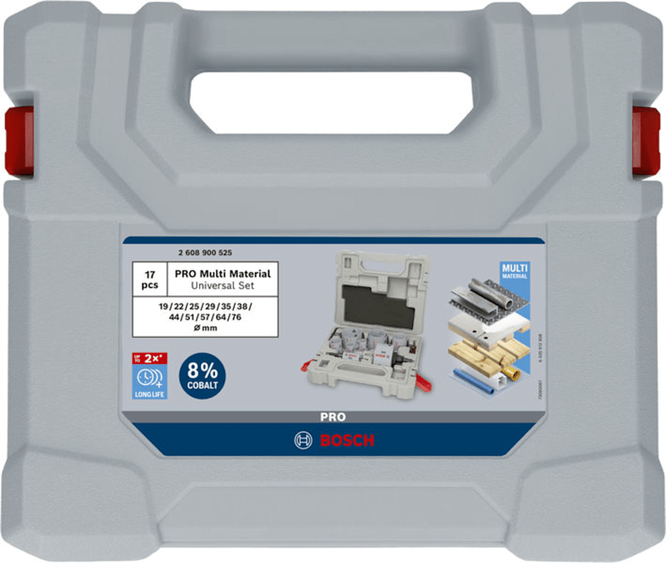 Lange Lebensdauer beim Schneiden von Löchern in verschiedenen Materialen! Hochgeschwindigkeitsstahl mit 8 % Kobalt für Langlebigkeit und hervorragende Leistung Für Elektriker und Sanitärinstallateure sind Lochsägen von unschätzbarem Wert für die Installation von Rohren, Schaltkästen und Einbauleuchten. Im Idealfall hast du nur eine Art von Lochsäge für alle Herausforderungen und Materialien, die der Innenausbau mit sich bringt. Die Lösung: die PRO Multi Material. Die PRO Multi Material Lochsäge verfügt über eine verbesserte Zahnform für schnelle und glatte Schnitte. Ihre HSS-Legierung mit hohem Kobaltgehalt sorgt für Langlebigkeit. Sie ermöglicht effektives Lochsägen in Stahlverkleidungen und Trockenbauwänden. Mit dem Q-Lock Adapter kannst du Lochsägen und Vorbohrer schneller wechseln und Bohrkerne einfacher entfernen.