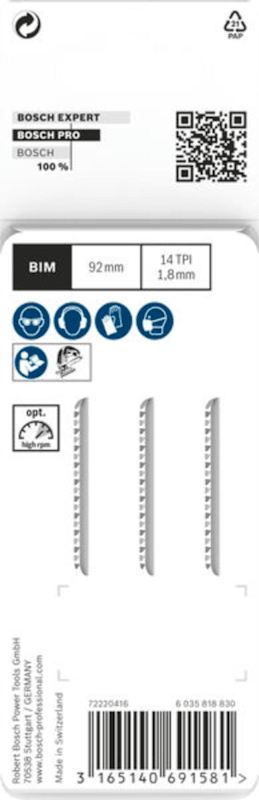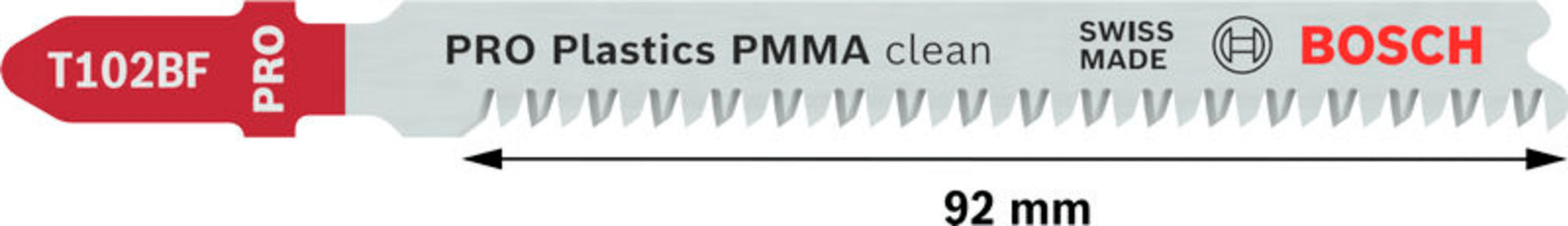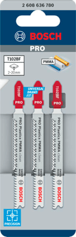Bosch PRO Plastics PMMA clean T102BF Stichsägeblatt, 92 mm, 3-tlg.