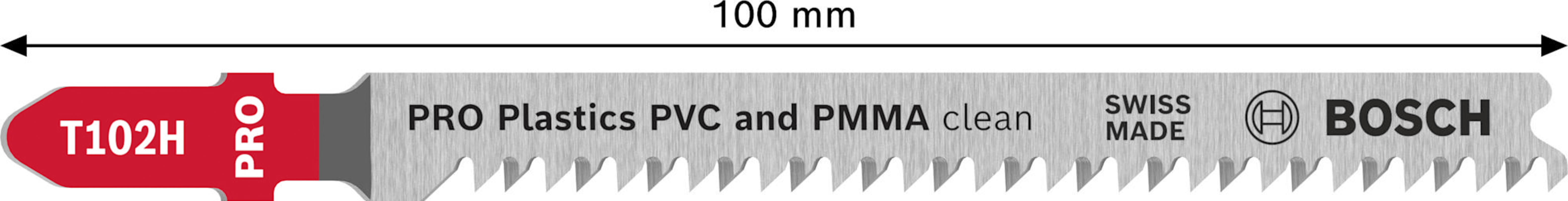 Präzises Schneiden von Kunststoffen! Konisch geschliffener Blattkörper für feine, saubere Schnitte Zum Schneiden von thermoplastischem Material ist ein scharfes und effizientes Stichsägeblatt erforderlich, das die Wärmeentwicklung reduziert und ein Schmelzen des Materials verhindert. Wir haben das PRO Plastics PVC and PMMA clean T102H entwickelt, um saubere Schnitte in thermoplastischen Platten, Rohren und Profilen zu ermöglichen.