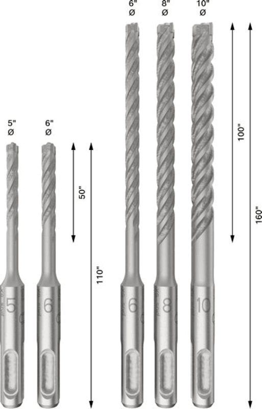 Herausragende Lebensdauer in Stahlbeton! Hochwertiges, zähes Wolfram-Carbide sorgt für Festigkeit und Haltbarkeit Stahlbeton ist ein gängiges Material im Infrastruktur-, Gewerbe- und Wohnungsbau. Elektriker, Sanitärinstallateure oder Heizungs- und Klimaanlagen-Monteure müssen oft auf diesen Bohrer zurückgreifen. PRO SDS plus-5X Hammerbohrer sind für diese schwierige Aufgabe konzipiert und verfügen über ein robustes 4-Schneider-Design, das beim Auftreffen auf Armierung weder klemmt noch bricht. Der Kopf mit 4 Schneiden des PRO SDS plus-5X hat ein eingebetteten Kreuz aus hochwertigem Wolfram-Carbide und bietet Komfort für Profis, die präzise Löcher in Stahlbeton bohren müssen. Der Steinbohrer verfügt über 4 Spiralnuten, die den Staub von der Schlagstelle wegleiten und so eine effektive und langanhaltende Leistung gewährleisten.