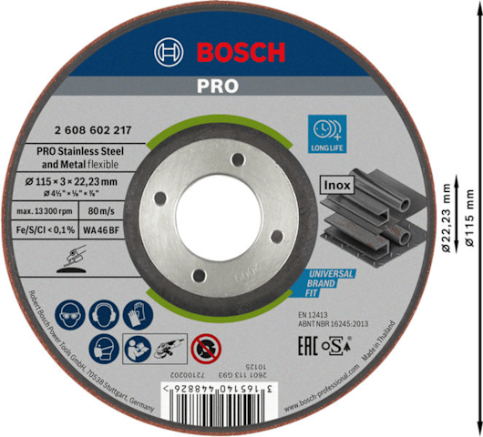 BOSCH PRO SEMI-FLEXIBLE SCHLEIFSCHEIBE 115X3X22,23MM (2608602217)