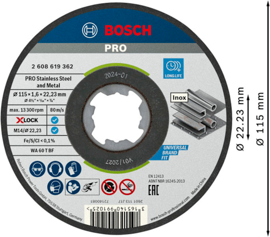 Bosch PRO Stainless Steel and Metal X-Lock Trennscheibe, 115 x 1,6 x 22,23 mm