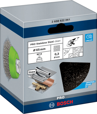 Meesenburg Artikelbezeichnung: BOSCH PRO STAINLESS STEEL CLEAN TOPFBÜRSTE 65X0,3MM GEWINDE (2608622061)