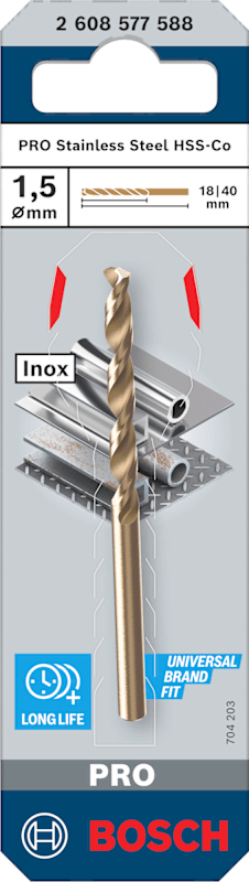 Bosch PRO Stainless Steel HSS-Co Spiralbohrer, 1,5 x 18 x 40 mm