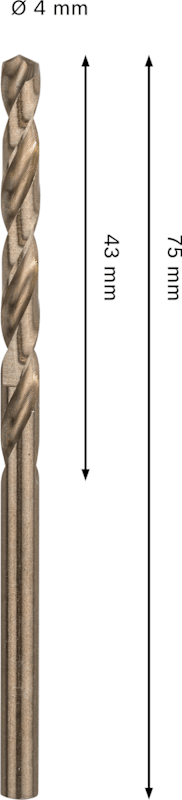 Meesenburg Artikelbezeichnung: BOSCH PRO STAINLESS STEEL HSS-CO SPIRALBOHRER 4X43X75MM (2608577595)