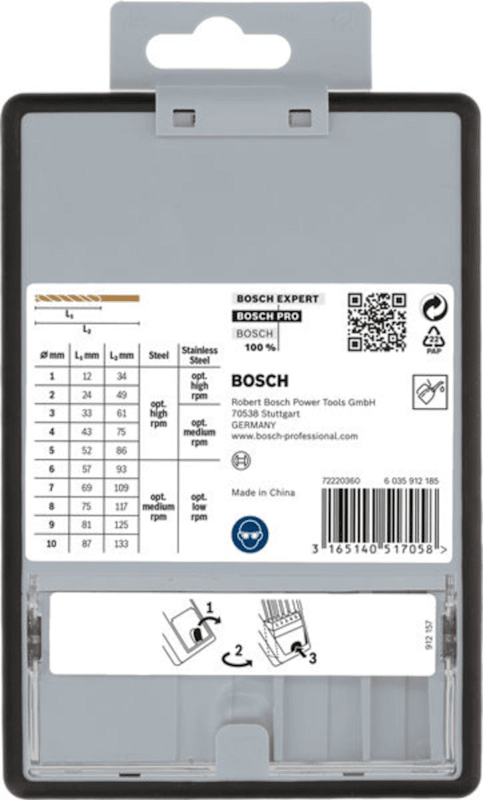 Meesenburg Artikelbezeichnung: BOSCH PRO STAINLESS STEEL HSS-CO SPIRALBOHRER-SET 10-TLG. (2607019925)