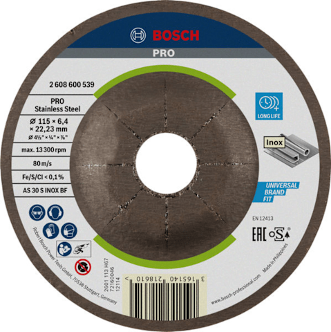 BOSCH PRO STAINLESS STEEL SCHLEIFSCHEIBE 115X6X22,23MM (2608600539)