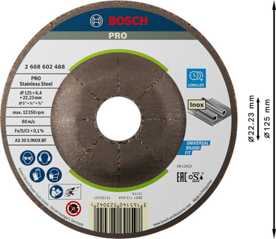 BOSCH PRO STAINLESS STEEL SCHLEIFSCHEIBE 125X6X22,23MM (2608602488)