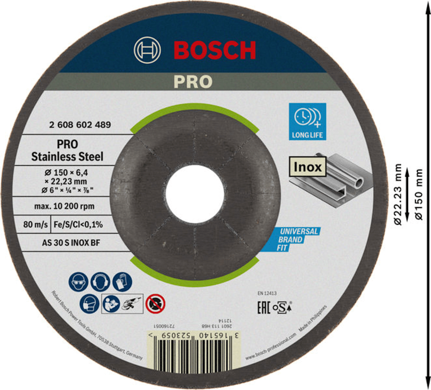 BOSCH PRO STAINLESS STEEL SCHLEIFSCHEIBE 150X6X22,23MM (2608602489)