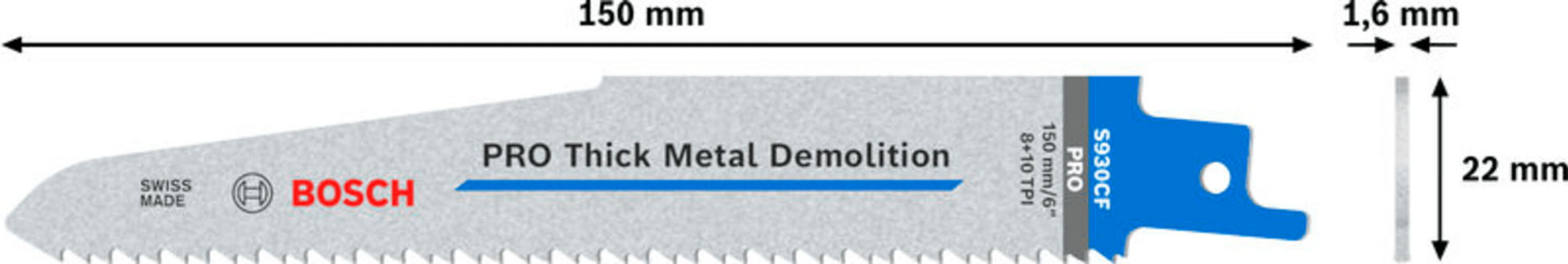 Bosch PRO Thick Metal Demolition S930CF Blatt, 1,6 x 22 x 150 mm, 25-tlg.