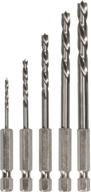 Präzisionsbohren in Holz! Die Spitze zentriert den Holzspiralbohrer und hilft dir beim Bohren sauberer, präziser Löcher Es kann eine Herausforderung sein, Löcher genau dort anzusetzen, wo du sie brauchst. Nicht mit PRO Wood HSS Holzspiralbohrern, die für präzises Bohren in Hart- und Weichholz entwickelt wurden. Die PRO Wood HSS Holzspiralbohrer bieten eine Lösung für Herausforderungen der Holzbearbeitung. Sie wurden aus Schnellarbeitsstahl (HSS) gefertigt, was bedeutet, dass sie strapazierfähig und hitzebeständig sind. Die Zentrierspitze bzw. Brad-Spitze sorgt dafür, dass die Löcher genau dort angesetzt werden, wo sie sein sollen. Dank der scharfen Schneidspitzen an der Spitze des Bohrers sind die Löcher rund und splitterfrei. Das zweispiralige Design hilft, Späne zu entfernen und verhindert, dass diese die Löcher verstopfen, sodass du schnell und effizient bohren kannst.