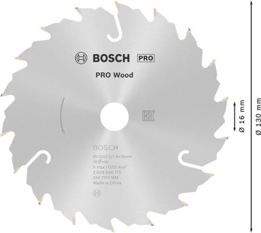Bosch PRO Wood Kreissägeblatt, 130 x 2 x 16 mm