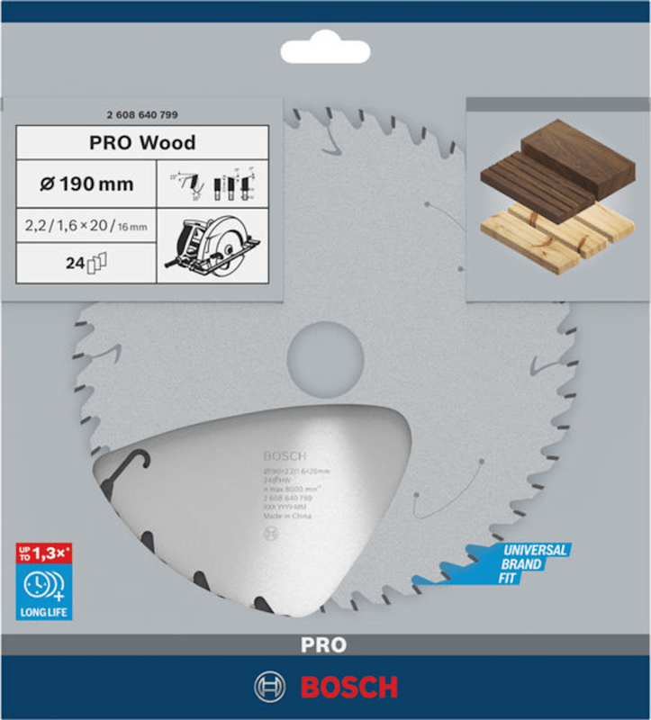 Herausragende Lebensdauer in Holz! Geschliffene und geschärfte feinkörnige Carbide-Zähne für Festigkeit und Haltbarkeit Das PRO Wood Kreissägeblatt wurde entwickelt, um deine Herausforderungen beim Schneiden von Massivholz und Holzwerkstoffen aller Arten zu meistern. Es ist stark und ausgewogen, damit du saubere und präzise Schnitte machen kannst – über einen langen Zeitraum. Das PRO Wood Kreissägeblatt ist eine sehr gute Wahl für Holzarbeiter, die Massivholz und Holzwerkstoffen aller Arten bearbeiten. Unser Kreissägeblatt für Holz verfügt über präzisionsgeschliffene Carbide-Zähne für Stabilität und Haltbarkeit. Die Basis aus gehärtetem Stahl sorgt für Stabilität und einen präzisen Schnitt. Die Dehnungsschlitze reduzieren die Wärmeentwicklung und sorgen so für eine lang anhaltende Leistung.