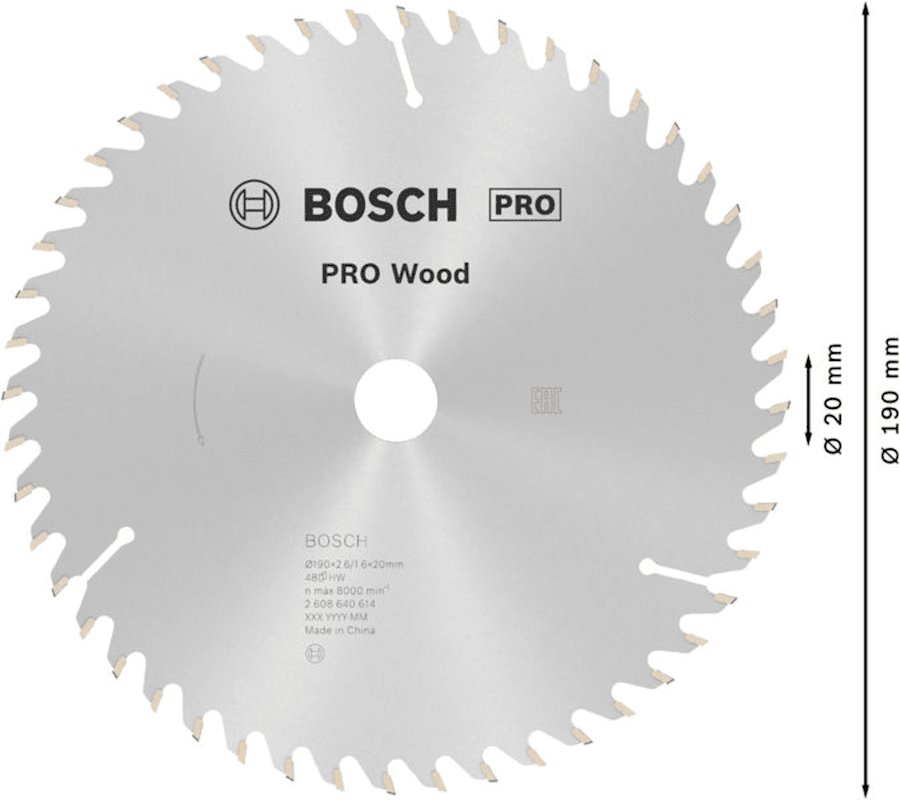 BOSCH PRO WOOD KREISSÄGEBLATT 190X2.6X20 MM (2608640614)