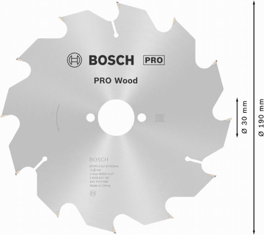 BOSCH PRO WOOD KREISSÄGEBLATT 190X2.6X30 MM (2608641187)
