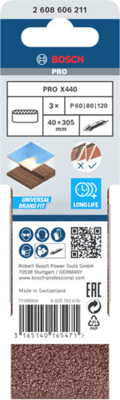 BOSCH PRO X440 SCHLEIFBAND 40X305 MM G60 G80 G120 3-TLG. (2608606211)