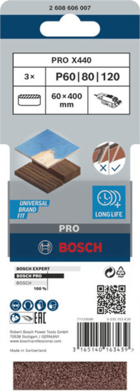 Bosch PRO X440 Schleifband, 60 x 400 mm, G60, G80, G100, 3-tlg.