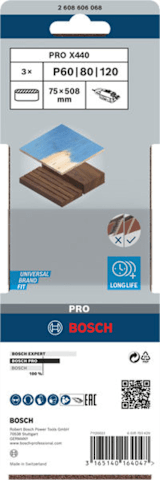 BOSCH PRO X440 SCHLEIFBAND 75X508 MM G60 G80 G100 3-TLG. (2608606068)