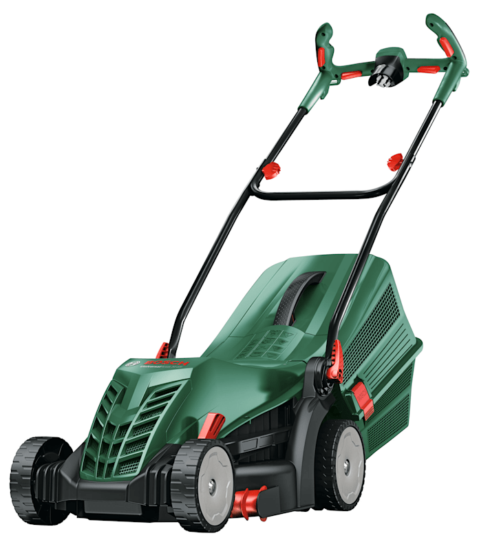 Rasenmäher UniversalRotak 34-405. Für rückenfreundliches Mähen – großartige Ergebnisse, ganz bis zum Rand. Energieeffizienter Motor für kraftvolles Mähen. Tragegriff zum einfachen Anheben der leichten Maschine. Sauberes Mähen an Kanten und Wänden. Klappbare Griffe zum Verstauen an engen Orten. Ergoflex-Handgriff für bequemes Manövrieren