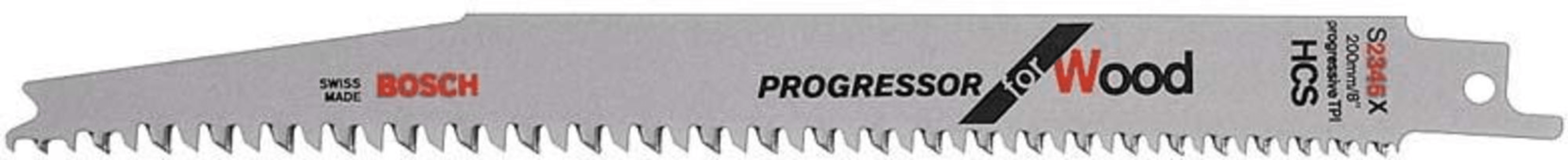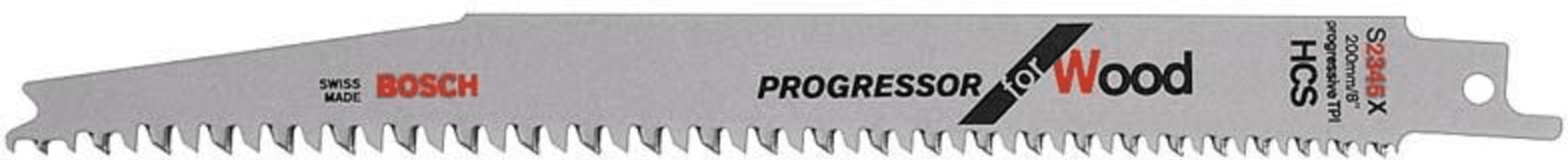 Säbelsägeblatt S 2345 X für Holz• HCS • Zähne geschliffen • Für den Tauchschnitt • Gerader, feiner Schnitt • Für MDF-Spanplatten mit einer Materialstärke von 6 bis 60 mm • Für Epoxy, Kunststoffe,