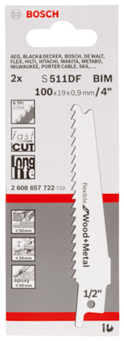 BOSCH SÄBELSÄGEBLATT S 511 DF FLEXIBLE FOR WOOD AND METAL 2ER-PACK (2608657722)